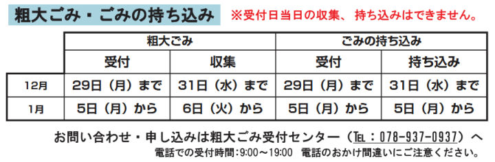 12月27日(土)~12月31日(水)の年末は混雑が予想されます。できればこの期間を外して早めに持込をしたほうが良さそうです。