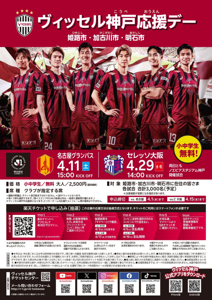 ホームページ ヴィッセル神戸「明石市民応援デー」(抽選)のご案内
