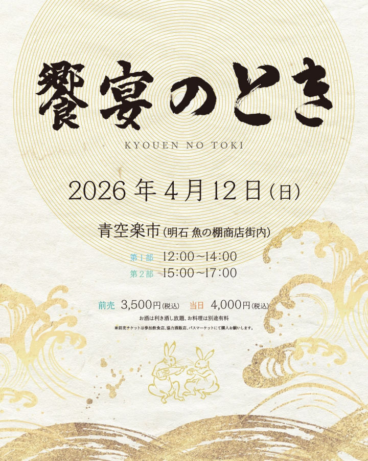 「饗宴のとき」は、明石の旨いもんと蔵元渾身のお酒を楽しむことをテーマに、明石で年に一度開催されているイベントです。