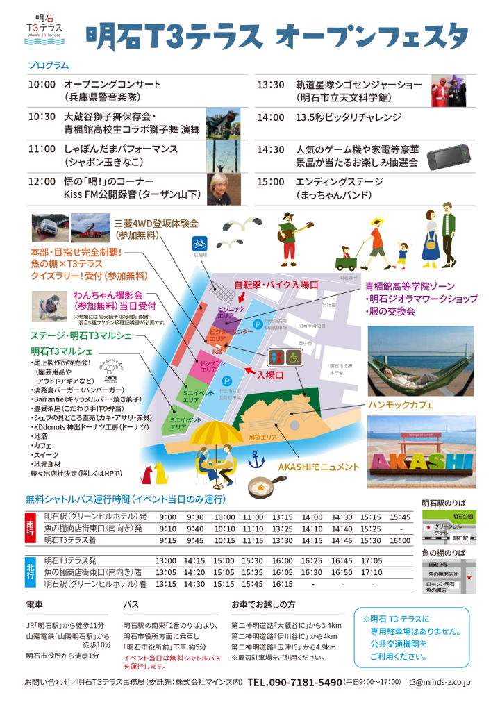 オープンに先立ち、3月28日(土)に「明石T3テラス オープンフェスタ」が開催されます。