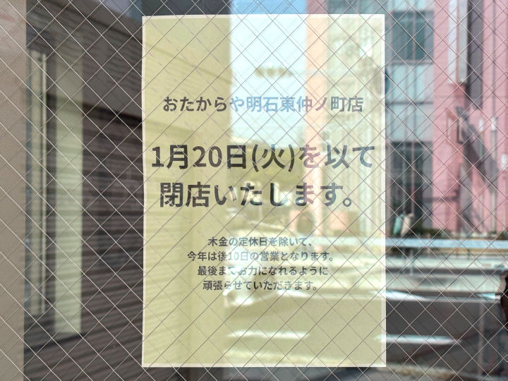 買取専門店「おたからや明石東仲ノ町店」閉店